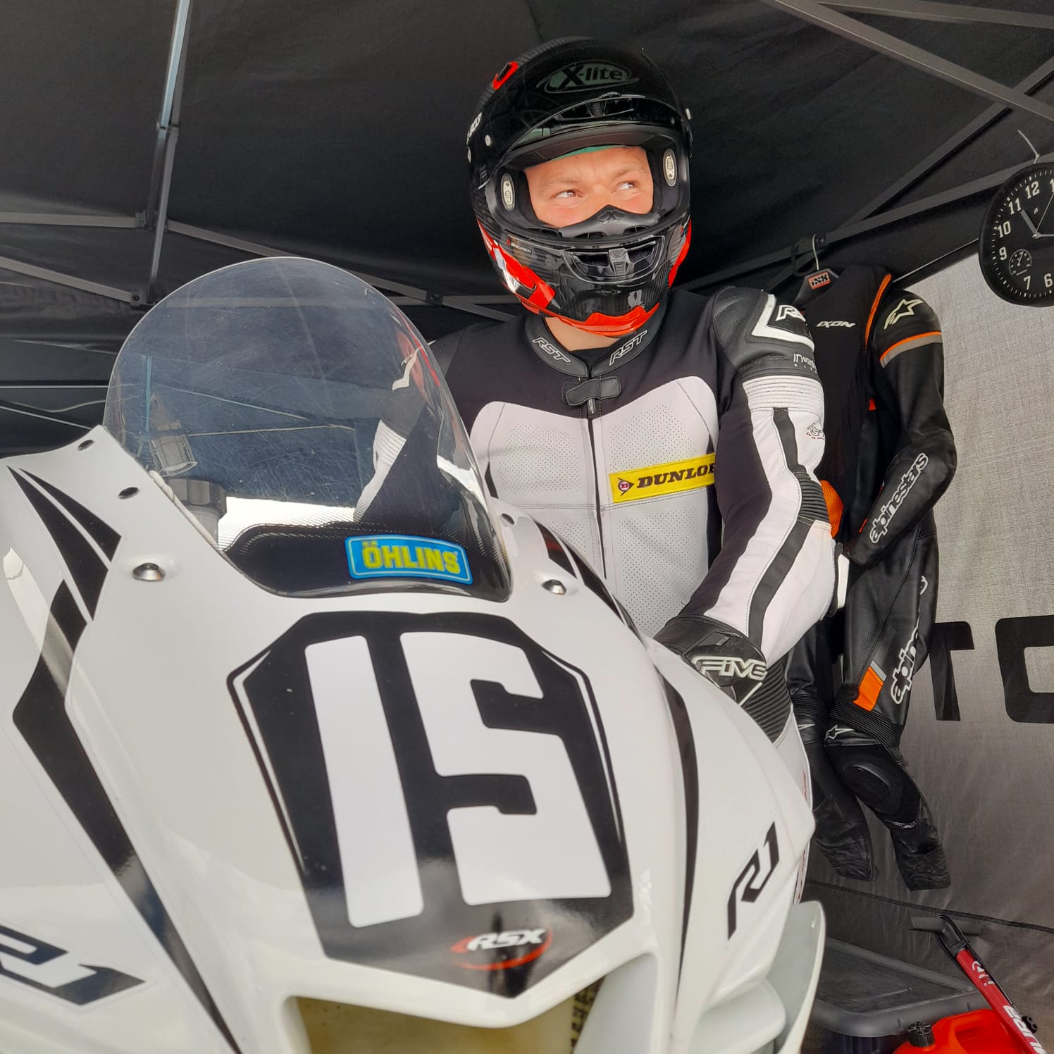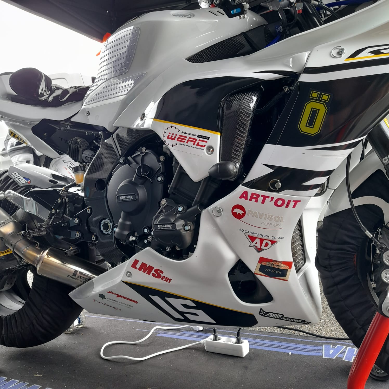 Q2 : au moment de passer en pré-grille, un controleur de la ffm voit la caméra d'Edouard à l'intérieur de son casque et lui dit que c'est interdit. Convocation par le jury : il écope d'une pénalité pour la course de 25 minutes avec un passage au stand obligatoire.